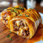 Garlic Butter Beef Cheeseburger Rollups are a mouthwatering twist on classic cheeseburgers, enveloping savory ground beef, sharp cheddar cheese, and aromatic garlic butter inside soft dinner rolls. Perfect for game days or cozy family movie nights, these delectable rollups promise to delight your taste buds with each bite. Golden brown and irresistibly cheesy, they are ideal for sharing and create memorable moments around the table.